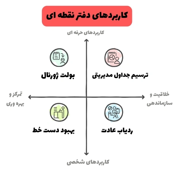 برای آگاهی کلی از مطالب این صفحه فقط در عرض چند دقیقه، کافی است به پادکست تخصصی تولید شده در گروه ناچو درباره کاربرد دفتر نقطه ای در پایین گوش دهید: