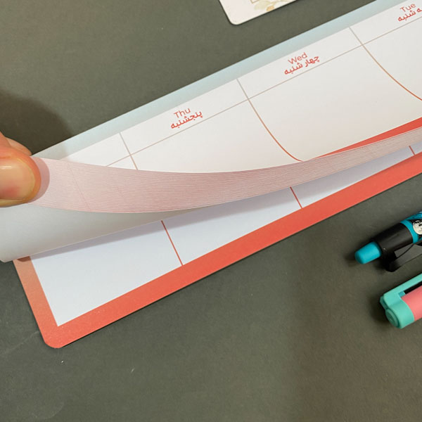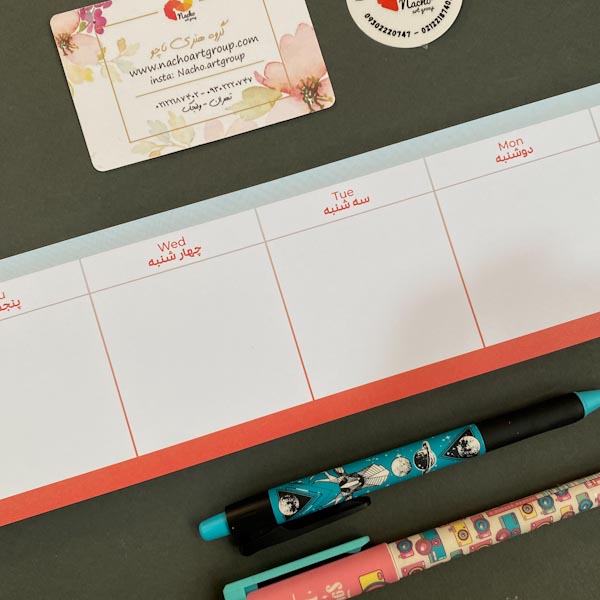 دفتر برنامه ریزی رومیزی هفتگی قرمز به شما کمک خواهد کرد تا زمان روزانه خود را بهتر مدیریت کنید و هفته ای پربارتر برای خود بسازید. اهمیت مدیریت کارهای روزانه برای همه ما روشن است. شما میتوانید با این برنامه ریزی روی میز، در طول روز وظایف بیشتری انجام داده و نتایج بهتری به دست آورید✔️
