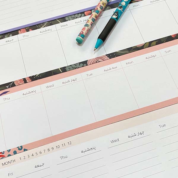 مدیریت زمان به ما کمک خواهد کرد تا در طول روز زمان بیشتری در اختیار داشته باشیم تا بتوانیم در مرحله اول کارهای ضروری را انجام دهیم و سپس سایر کارهای خود را به پایان برسانیم. دفتر برنامه ریزی رومیزی هفتگی گل صورتی به شما کمک خواهد کرد تا این برنامه ریزی سریع تر و دقیق تر انجام شود 🙂