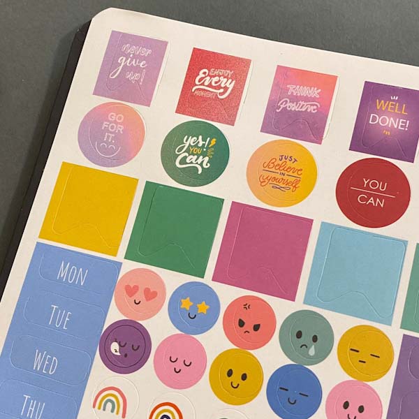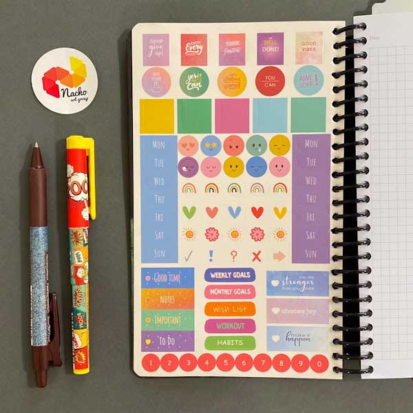 این دفتر دارای یک صفحه استیکر هستش که میتونی برای برنامه ریزی ازشون استفاده کنیو جالب اینه که میتونی روی اونها با راپید هم بنویسی!